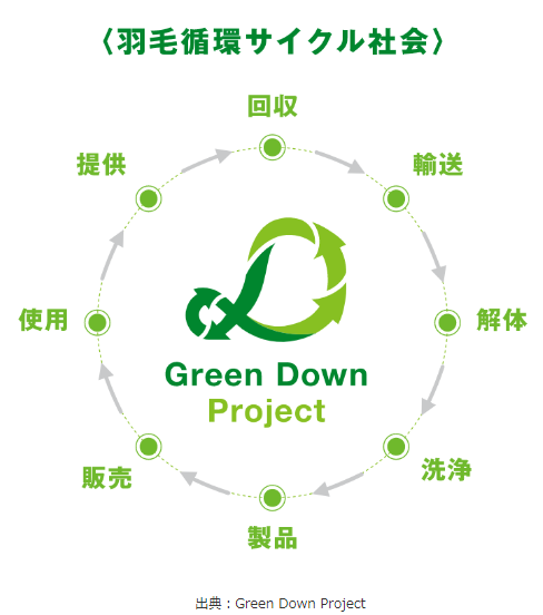 「Green Down ProJect」という、ダウンを資源として活かそうというプロジェクトが発足しました。さまざまな企業や