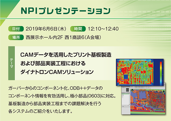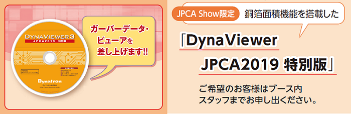 2019年5月8日 NPIプレゼンテーション お申込みいただいたお客様にもれなく、銅箔面積機能を搭載した、JPCA Show限定 『DynaViewer JPCA2019特別版』を差し上げます!お申込み、お待ちしております。