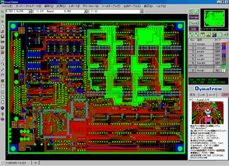 ダイナビューアは、ガーバーデータやNCドリルデータを読み込み表示するツールです。