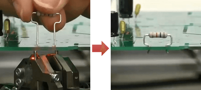 リードカット&クリンチをを自動で瞬時に行います。挿入作業前にリードをカットする工程を削減することが可能です。また、クリンチすることにより、フロー後の部品の浮きを防止します。