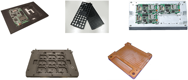 搬送キャリア、フローパレット、バックアッププレート、検査冶具、組み立て冶具、位置決め用冶具など、様々な治具の加工が可能です。