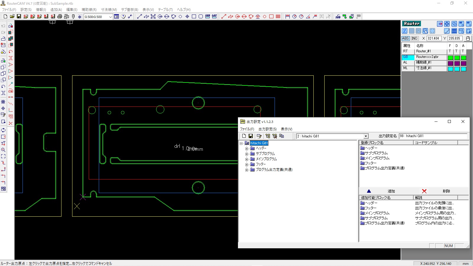 外形加工データを作成するため外形ガーバーを読み込み、変換パラメータに従いルーターデータへ自動変換したり、CAD図面を作成するような補助線を使用し複雑な図形の加工データを容易に作成できます。