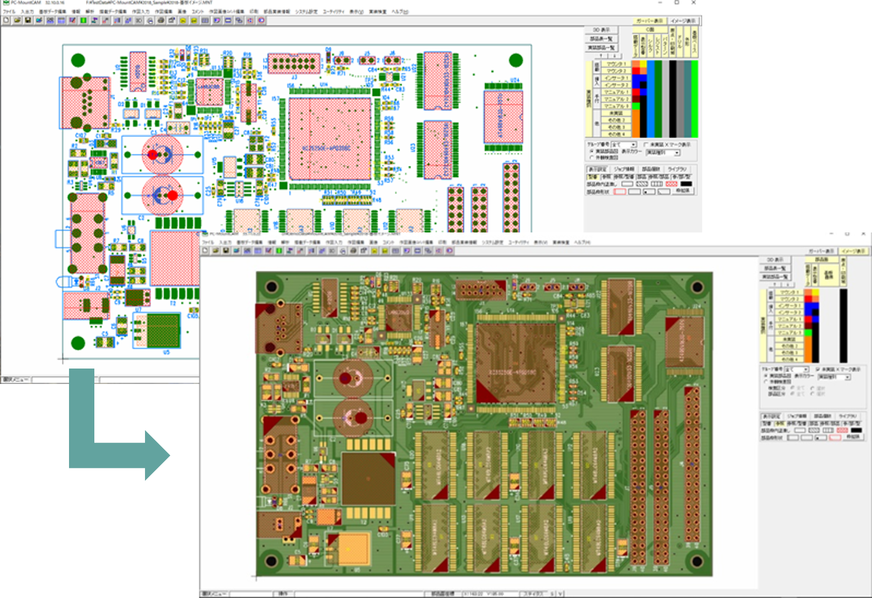 部品搭載前から実基板に近いイメージ表示や部品検索が可能となります。