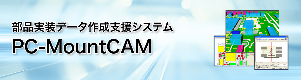 『PC-MountCAM』は、部品搭載データを中心とした新発想のプラットフォームで、実装段取り時間の大幅な短縮、現場作業者へ向けた最適な作業支援、データの電子化など、飛躍的な作業効率向上を実現するシステムです。