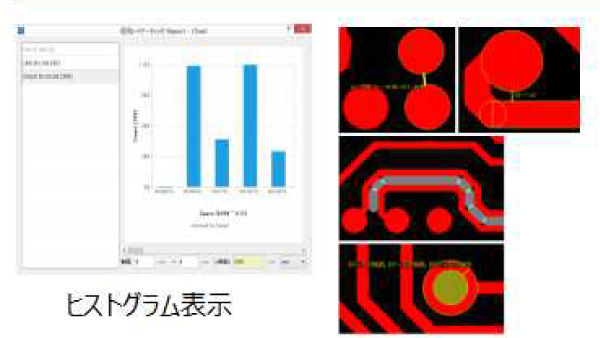 マルチスレット方式の採用により、チェック時間を大幅短縮を実現。 また、DRCチェック中にも差の作業が行えます。DFM結果は、解析しやすいダイアログボックスを提供します。